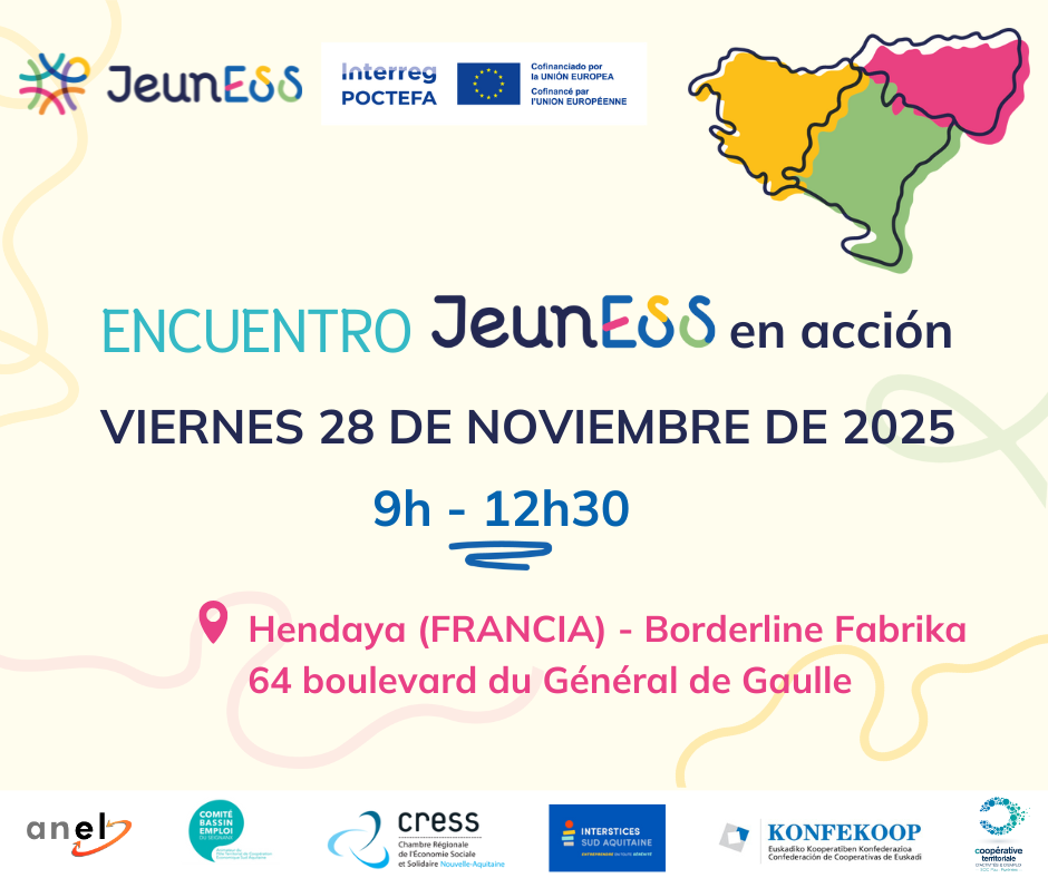 El proyecto JeunESS tiene como objetivo promover la Economía Social (ES) y el emprendimiento cooperativo para mejorar la empleabilidad de los jóvenes y facilitar su inserción profesional en el espacio transfronterizo que reúne al Sur de Aquitania, Euskadi y Navarra.